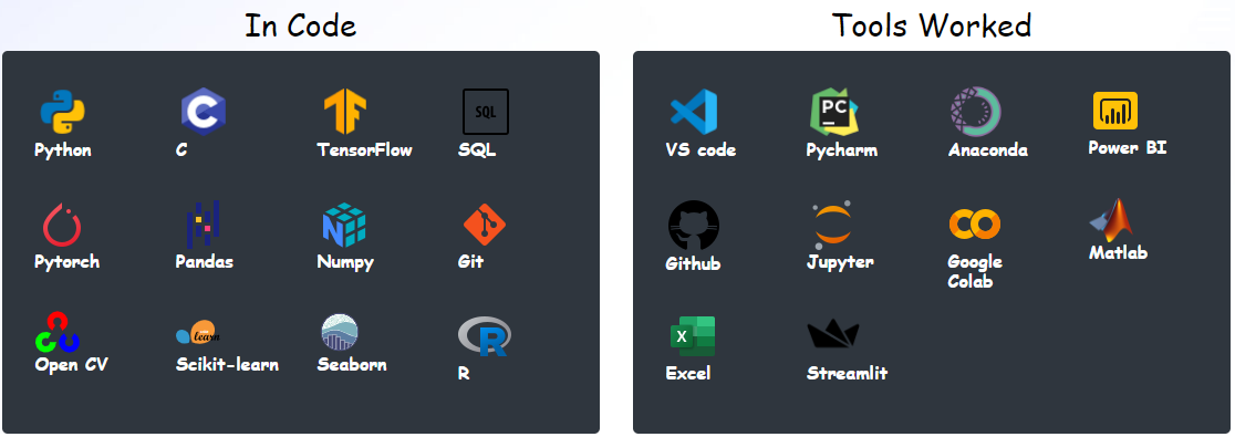 Excel . Power BI . Tableau . GitHub . StreamLit . Pytorch . Tensorflow . Langchain . Pandas . ​Numpy . matplotlib . sklearn . Flask . Keras . PySpark . Azure Data Factory . Linux OS