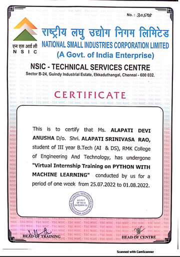 NSIC PYTHON WITH MACHINE LEARNING INTERNSHIP